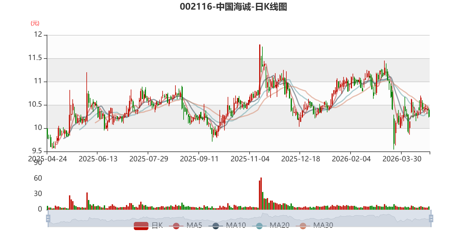 中证智能财讯中国海诚(002116)4月24日披露2026年第一季度报告。公司实现营业总收入9.59亿元,同比下降8.65%;归母净利润4116.9万元,同比下降9.61%;扣非净利润3940.75万元,同比下降9.39%;经营活动产生的现金流量净额为-2.69亿元,上年同期为-1.82亿元;报告期内,中国海诚基本每股收益为0.09元,加权平均净资产收益率为1.47%。