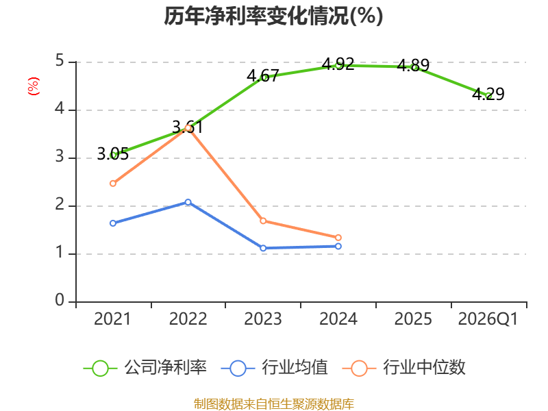 盈利能力方面, 2026年一季度公司加权平均净资产收益率为1.47%,同比下降0.3个百分点。公司2026年第一季度投入资本回报率为1.32%,较上年同期下降0.25个百分点。