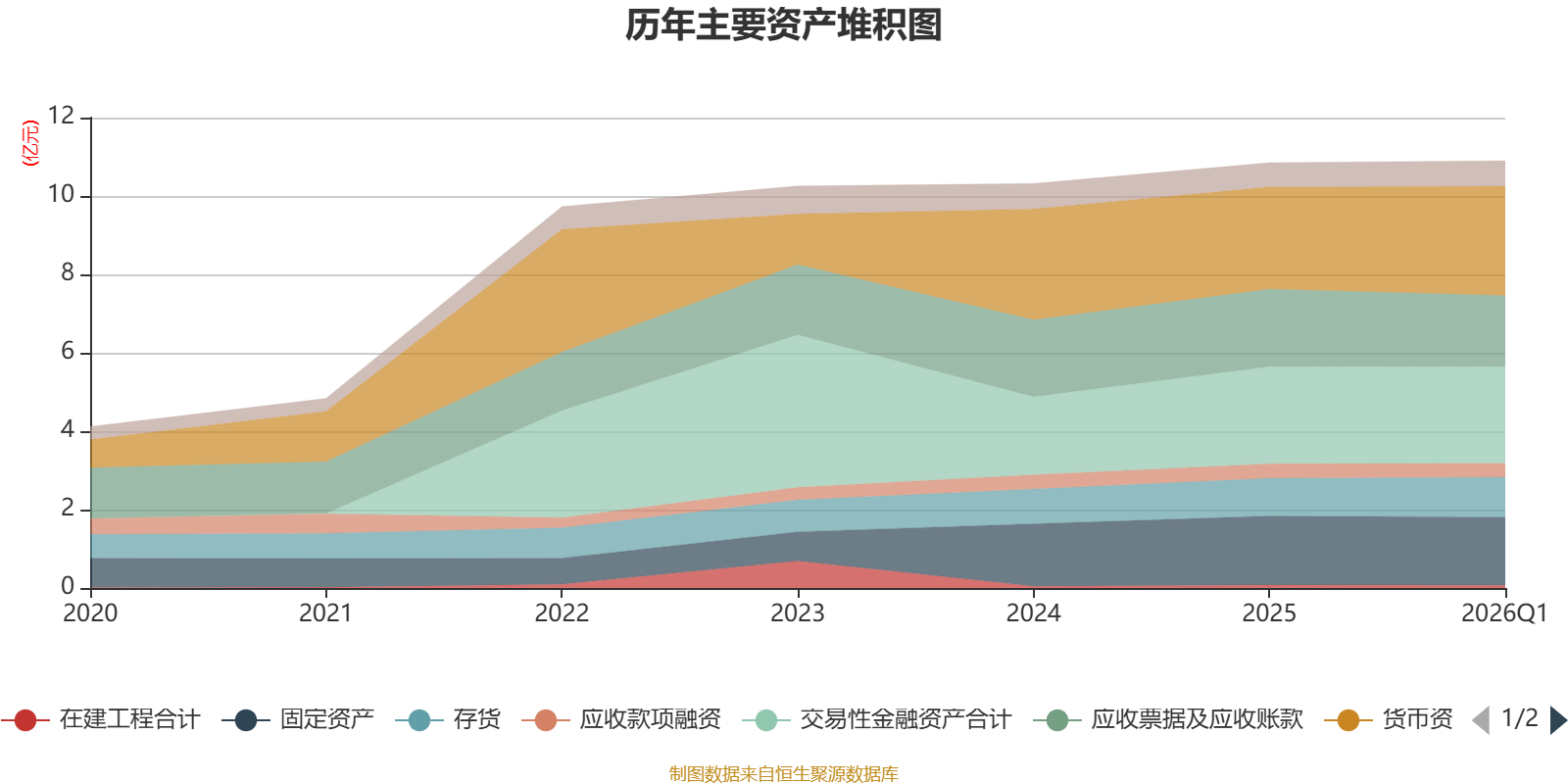 资产重大变化方面,截至2026年一季度末,公司应收票据及应收账款较上年末减少8.61%,占公司总资产比重下降1.64个百分点;货币资金较上年末增加6.82%,占公司总资产比重上升1.53个百分点;存货较上年末增加5.85%,占公司总资产比重上升0.48个百分点;预付款项较上年末增加76.29%,占公司总资产比重上升0.37个百分点。
