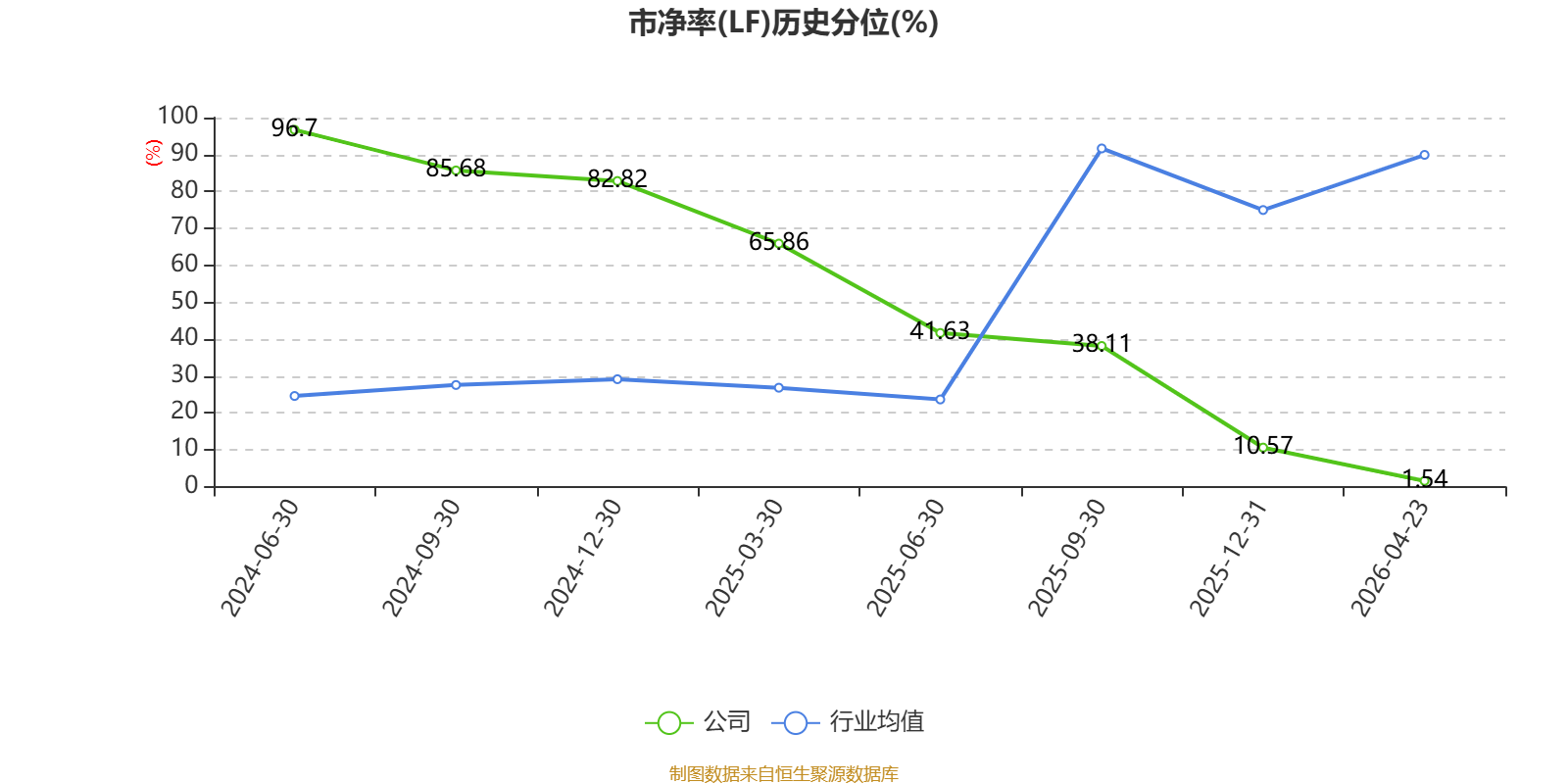 市盈率、市净率为负时,不显示当期分位数,会导致折线图中断。