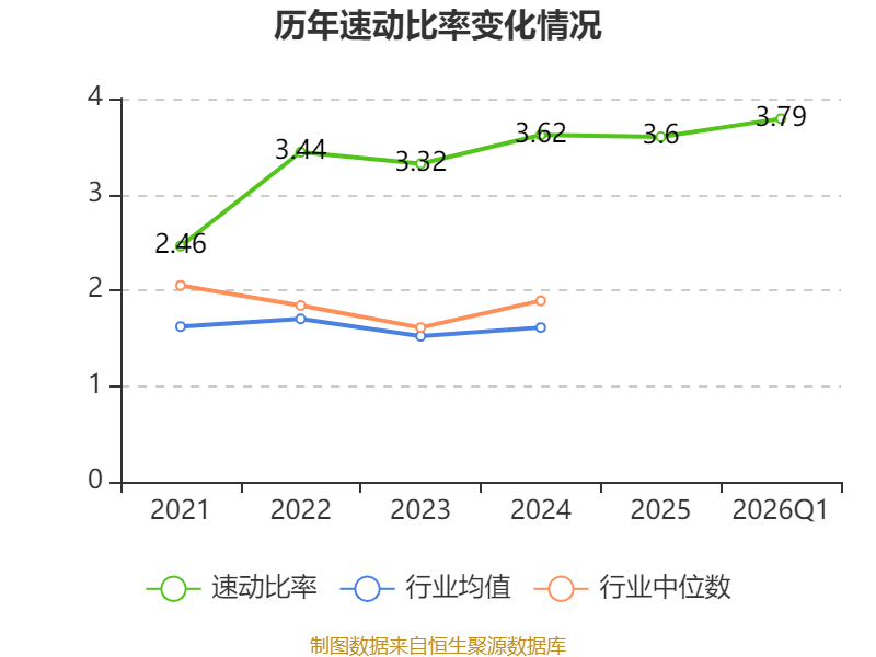2026年第一季度,公司流动比率为3.97,速动比率为3.79。