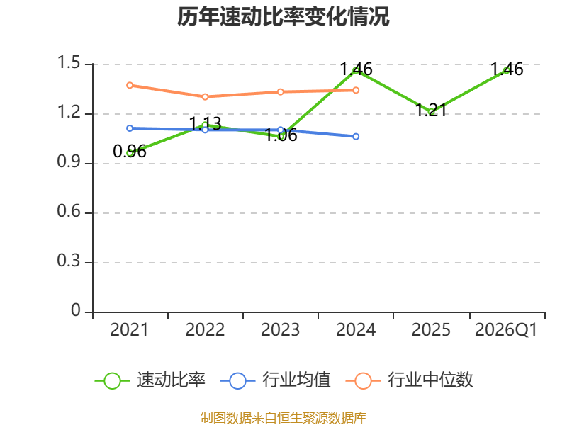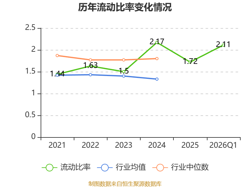 2026年第一季度,公司流动比率为2.11,速动比率为1.46。