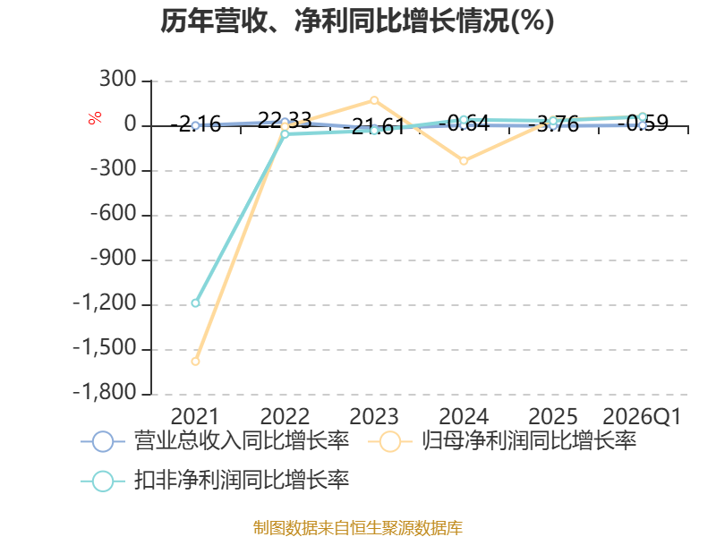 资产重大变化方面,截至2026年一季度末,公司固定资产较上年末减少2.01%,占公司总资产比重上升8.78个百分点;存货较上年末减少88.57%,占公司总资产比重下降3.03个百分点;其他应收款(含利息和股利)较上年末减少29.45%,占公司总资产比重下降2.19个百分点;货币资金较上年末减少49.07%,占公司总资产比重下降2.14个百分点。