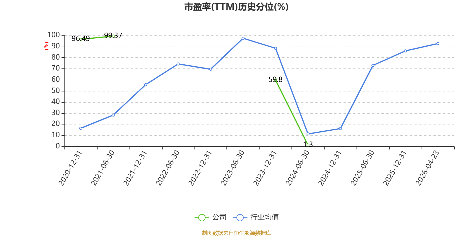 市盈率、市净率为负时,不显示当期分位数,会导致折线图中断。