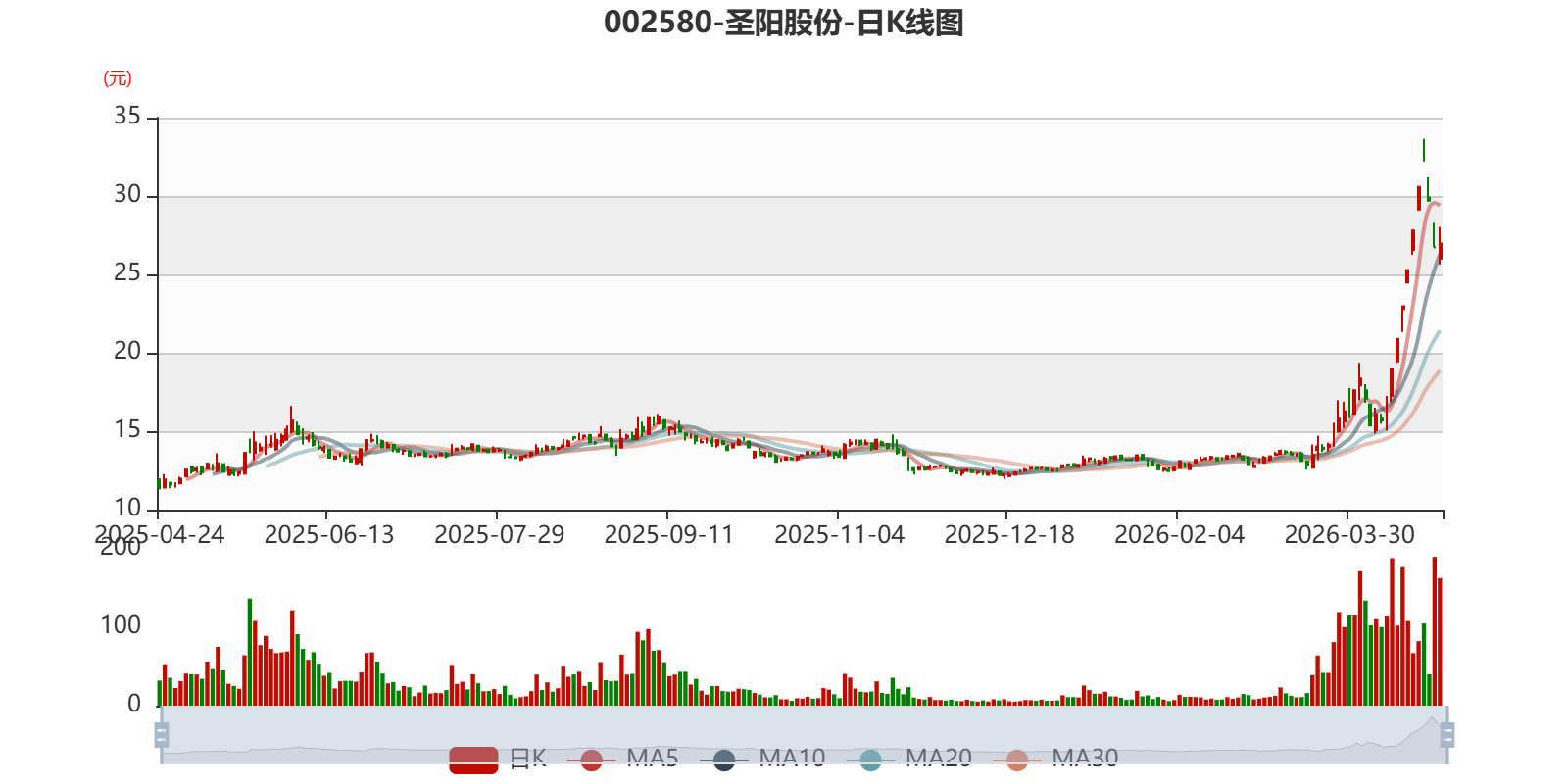 中证智能财讯圣阳股份(002580)4月24日披露2026年第一季度报告。公司实现营业总收入9.02亿元,同比增长19.65%;归母净利润6094.63万元,同比增长0.43%;扣非净利润5923.95万元,同比增长4.65%;经营活动产生的现金流量净额为-1.37亿元,上年同期为-1482.8万元;报告期内,圣阳股份基本每股收益为0.13元,加权平均净资产收益率为2.56%。