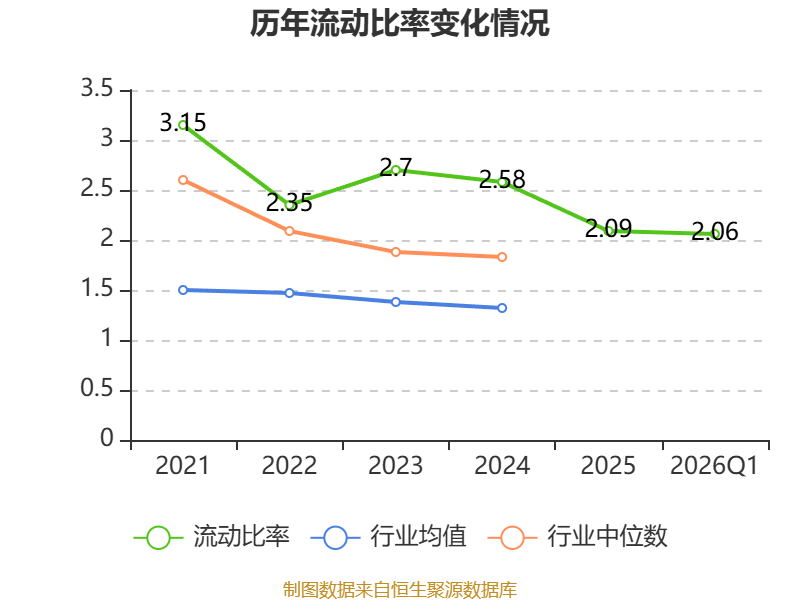 2026年第一季度,公司流动比率为2.06,速动比率为1.58。