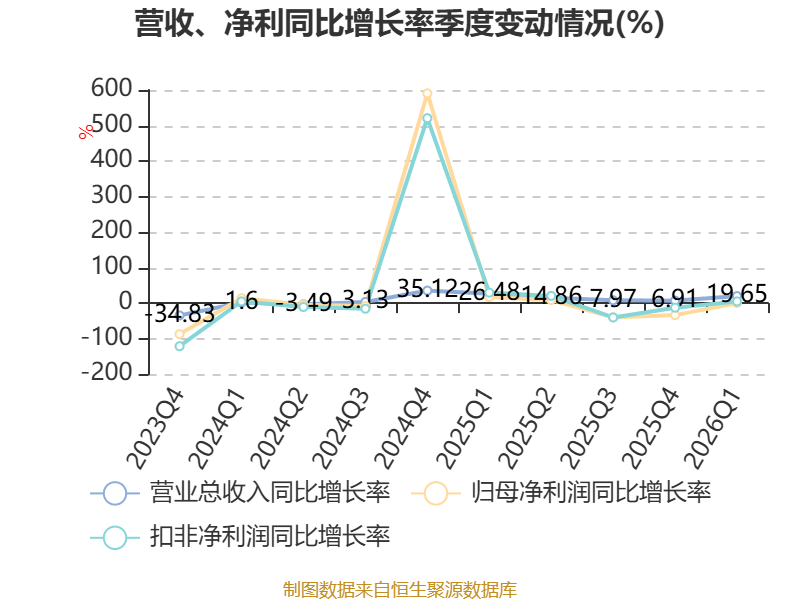资产重大变化方面,截至2026年一季度末,公司货币资金较上年末减少5.45%,占公司总资产比重下降3.35个百分点;应收票据及应收账款较上年末增加22.45%,占公司总资产比重上升2.8个百分点;存货较上年末增加19.88%,占公司总资产比重上升1.14个百分点;在建工程合计较上年末减少55.28%,占公司总资产比重下降1.01个百分点。