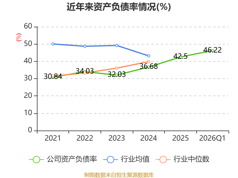 负债重大变化方面,截至2026年一季度末,公司长期借款较上年末增加53.15%,占公司总资产比重上升2.89个百分点;短期借款较上年末增加564.29%,占公司总资产比重上升0.74个百分点;其他流动负债较上年末减少15.11%,占公司总资产比重下降0.66个百分点;其他应付款(含利息和股利)较上年末增加85.68%,占公司总资产比重上升0.55个百分点。