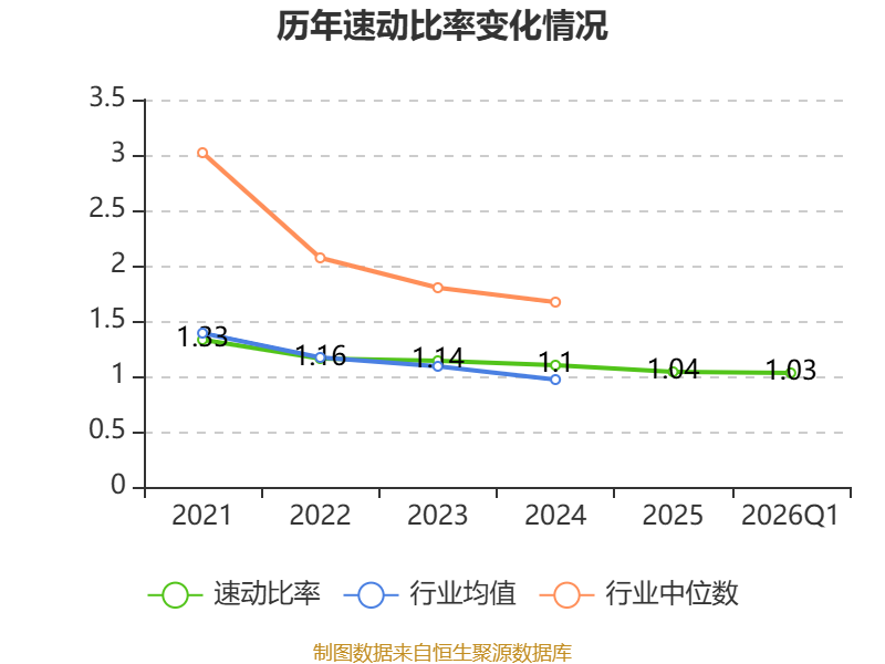 2026年第一季度,公司流动比率为1.45,速动比率为1.03。