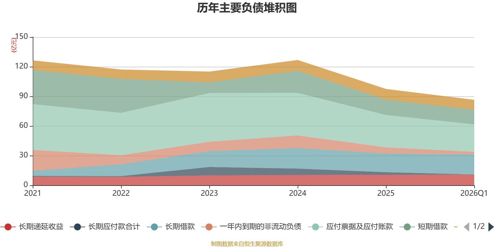 负债重大变化方面,截至2026年一季度末,公司应付票据及应付账款较上年末减少15.35%,占公司总资产比重下降1.53个百分点;一年内到期的非流动负债较上年末减少57.5%,占公司总资产比重下降1.27个百分点;长期应付款合计较上年末减少100%,占公司总资产比重下降0.92个百分点;长期借款较上年末增加6.89%,占公司总资产比重上升0.73个百分点。