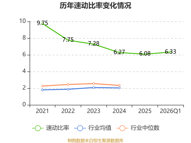 2026年第一季度,公司流动比率为7.31,速动比率为6.33。