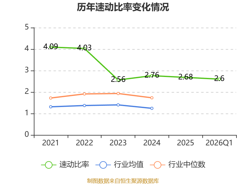 2026年第一季度,公司流动比率为3.36,速动比率为2.6。