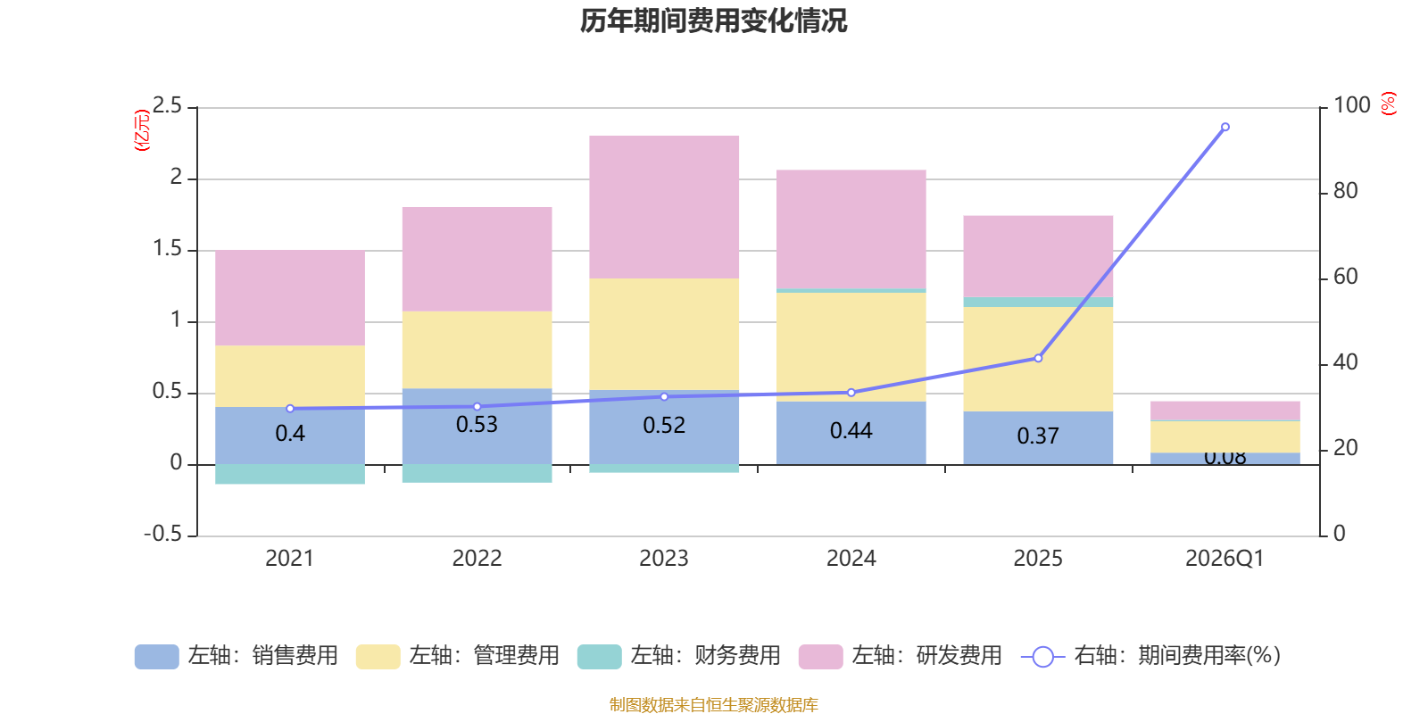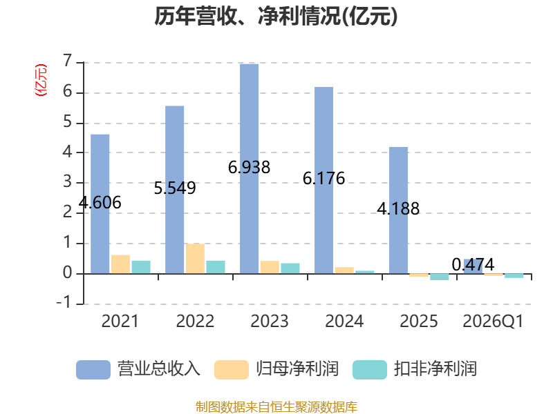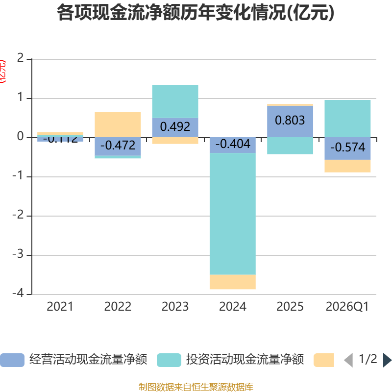 截至2026年一季度末,公司经营活动现金流净额为-5736.72万元,同比减少1159.57万元;筹资活动现金流净额-3230.83万元,同比减少3147.3万元;投资活动现金流净额9497.64万元,上年同期为2561.43万元。