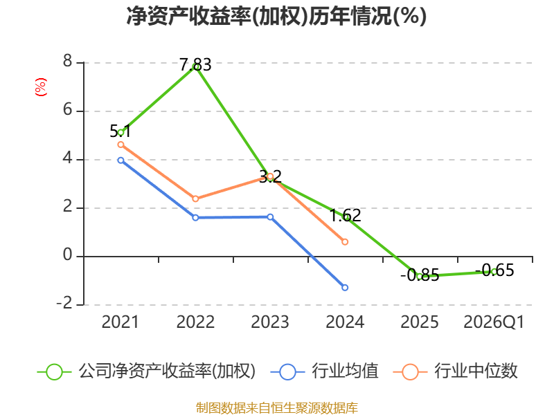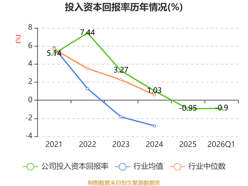 盈利能力方面, 2026年一季度公司加权平均净资产收益率为-0.65%,同比下降0.71个百分点。公司2026年第一季度投入资本回报率为-0.9%,较上年同期下降0.77个百分点。