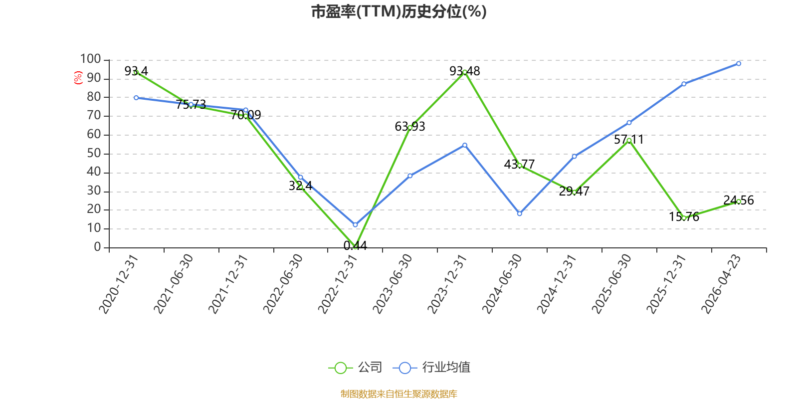 市盈率、市净率为负时,不显示当期分位数,会导致折线图中断。