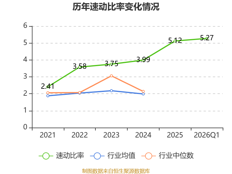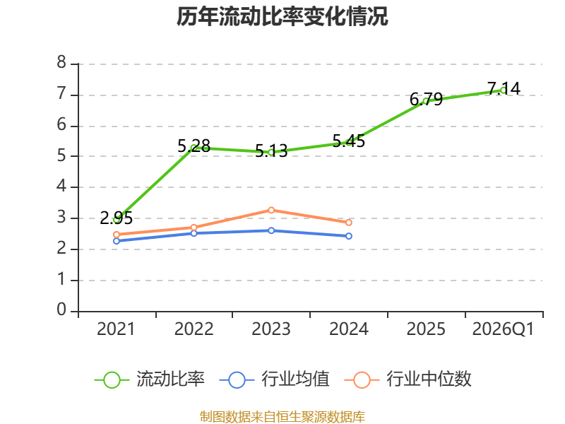 2026年第一季度,公司流动比率为7.14,速动比率为5.27。