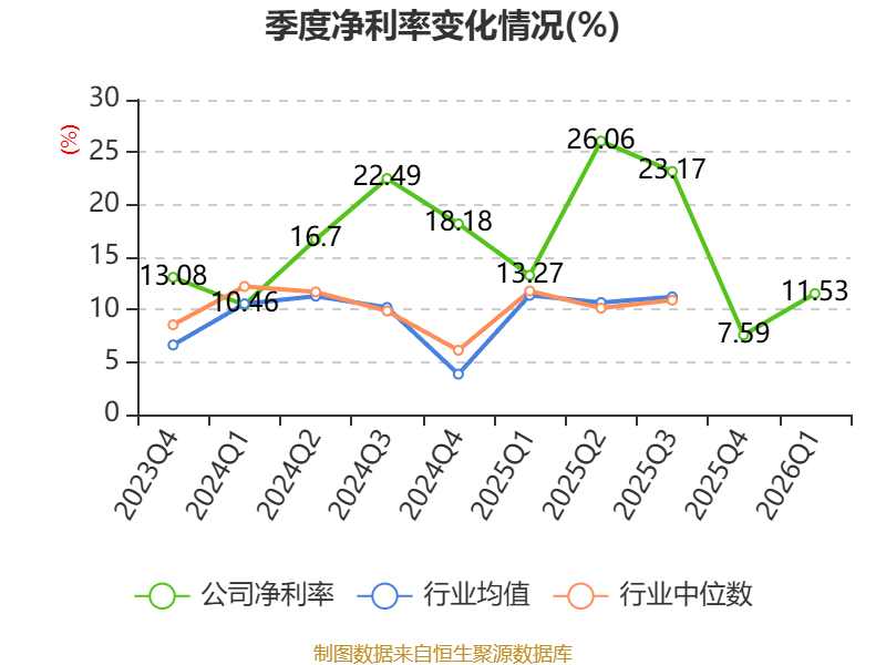 资产重大变化方面,截至2026年一季度末,公司交易性金融资产合计较上年末减少18.76%,占公司总资产比重下降2.78个百分点;货币资金较上年末增加13.43%,占公司总资产比重上升2.08个百分点;固定资产较上年末减少3.12%,占公司总资产比重下降1.27个百分点;存货较上年末增加10.01%,占公司总资产比重上升1.22个百分点。