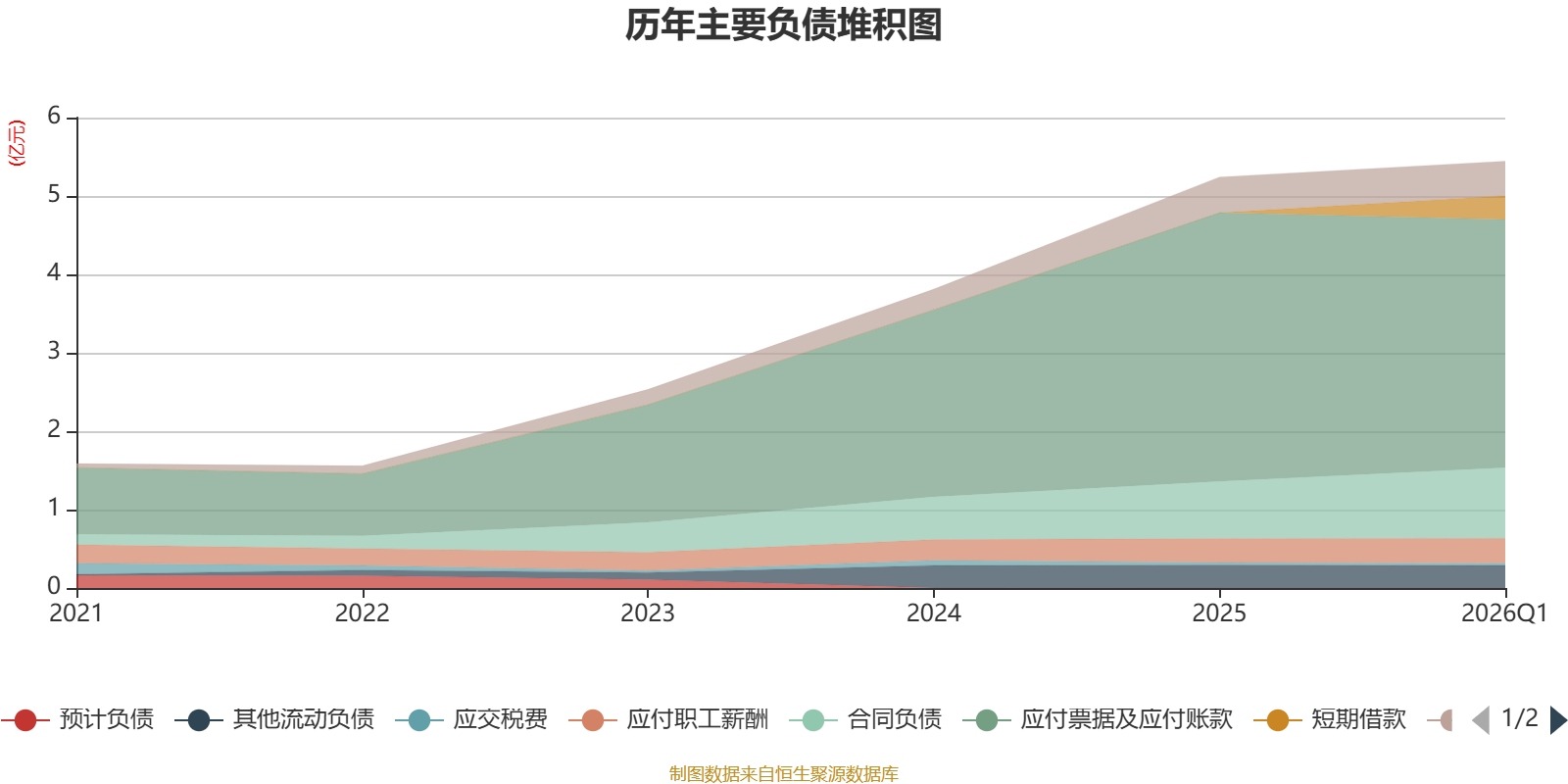 负债重大变化方面,截至2026年一季度末,公司短期借款占公司总资产的1.3%,上年末为0;应付票据及应付账款较上年末减少7.67%,占公司总资产比重下降1.06个百分点;合同负债较上年末增加23.89%,占公司总资产比重上升0.76个百分点;应付职工薪酬较上年末增加3.69%,占公司总资产比重上升0.05个百分点。