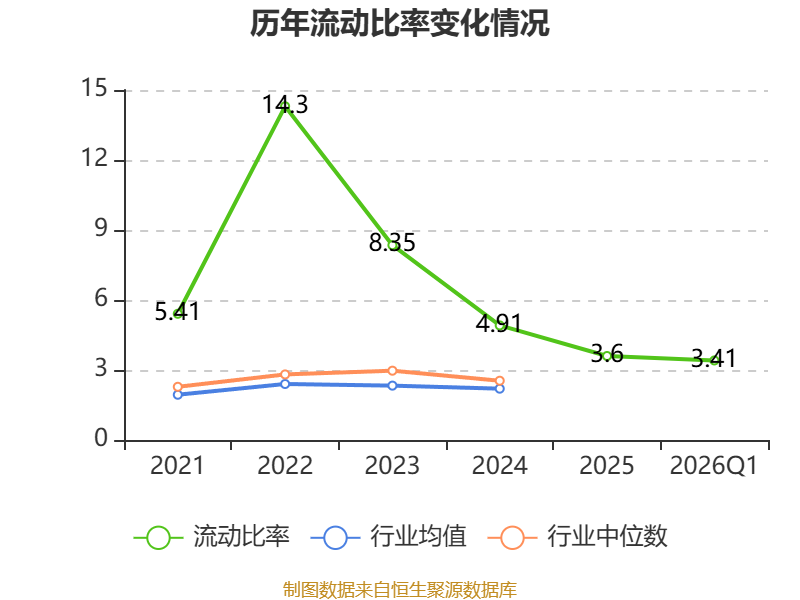 2026年第一季度,公司流动比率为3.41,速动比率为2.77。