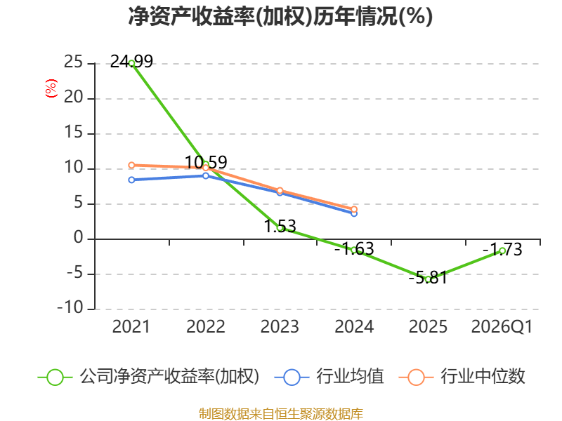 盈利能力方面, 2026年一季度公司加权平均净资产收益率为-1.73%,同比下降0.66个百分点。公司2026年第一季度投入资本回报率为-2.36%,较上年同期下降0.85个百分点。