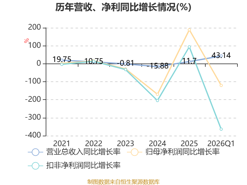 资产重大变化方面,截至2026年一季度末,公司交易性金融资产合计较上年末减少10.56%,占公司总资产比重下降6.23个百分点;存货较上年末增加78.72%,占公司总资产比重上升4.72个百分点;货币资金较上年末增加33.07%,占公司总资产比重上升3.66个百分点;预付款项较上年末增加135.92%,占公司总资产比重上升2.31个百分点。