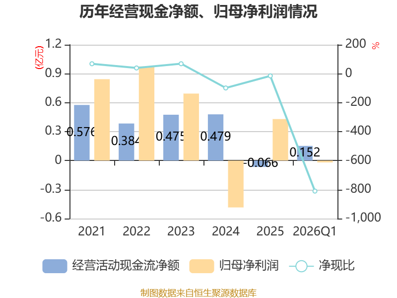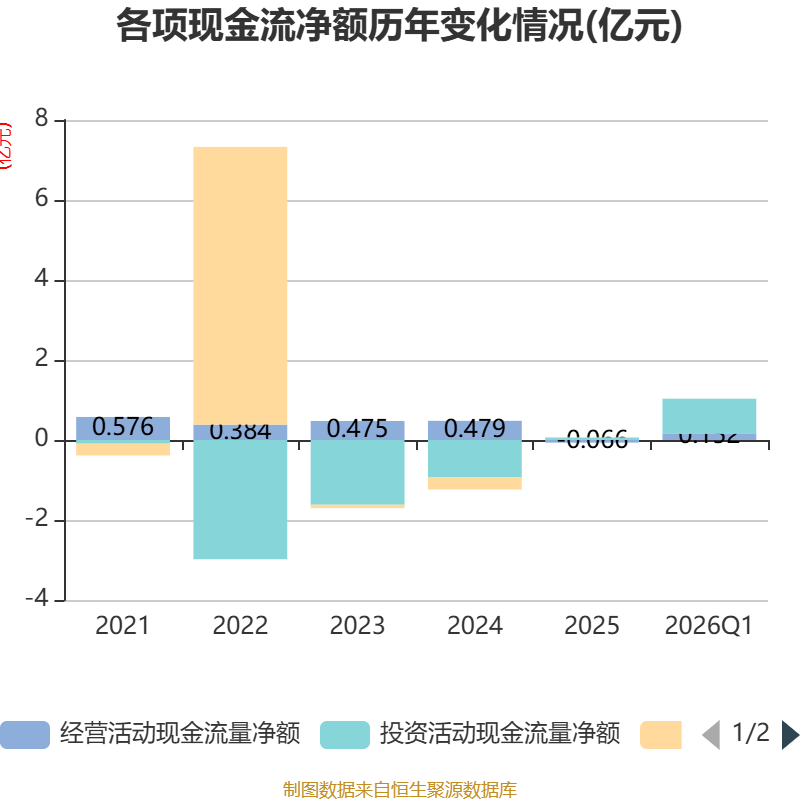 截至2026年一季度末,公司经营活动现金流净额为1521.4万元,同比增长224.52%;筹资活动现金流净额0元,同比增加160.54万元;投资活动现金流净额8795.27万元,上年同期为6207.09万元。