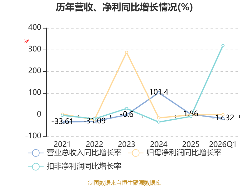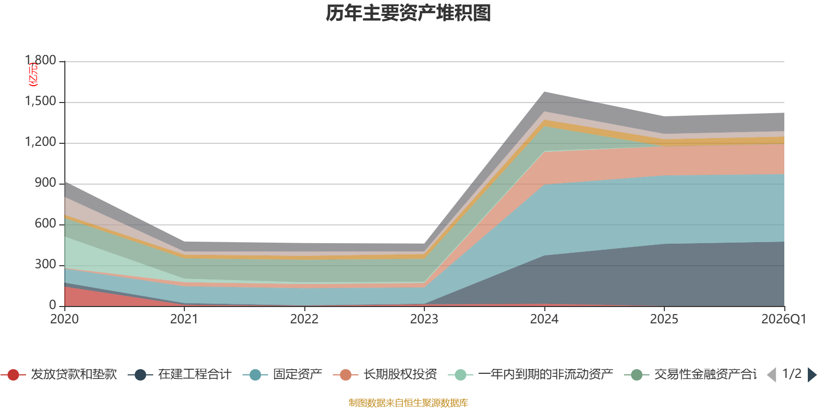 资产重大变化方面,截至2026年一季度末,公司固定资产较上年末减少1.2%,占公司总资产比重下降1.08个百分点;预付款项较上年末增加113.94%,占公司总资产比重上升0.81个百分点;在建工程合计较上年末增加3.41%,占公司总资产比重上升0.5个百分点;长期股权投资较上年末增加3.94%,占公司总资产比重上升0.31个百分点。