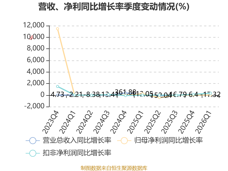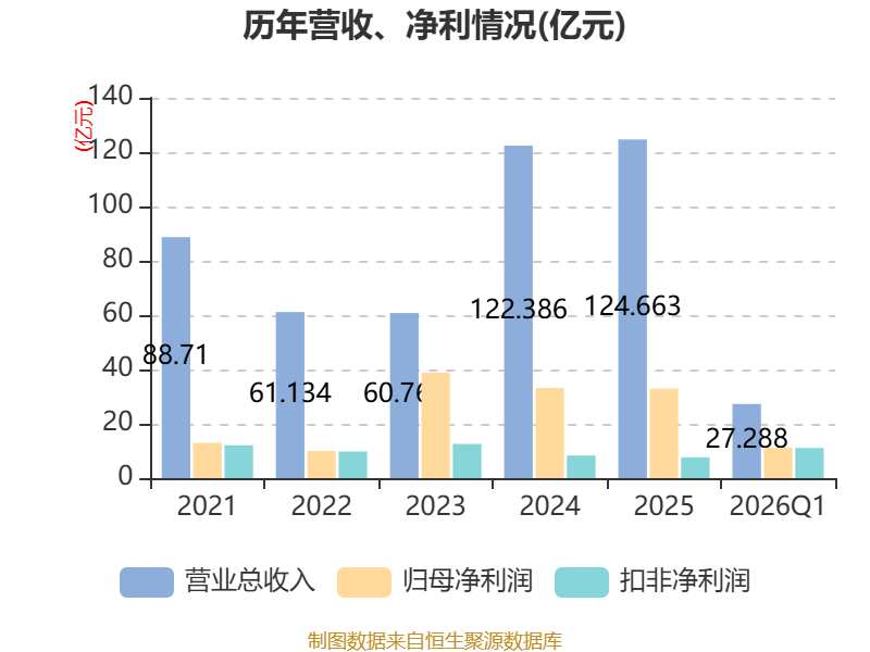 截至2026年一季度末,公司经营活动现金流净额为7.95亿元,同比下降20.16%;筹资活动现金流净额16.01亿元,同比增加12.83亿元;投资活动现金流净额-23.75亿元,上年同期为-10.95亿元。