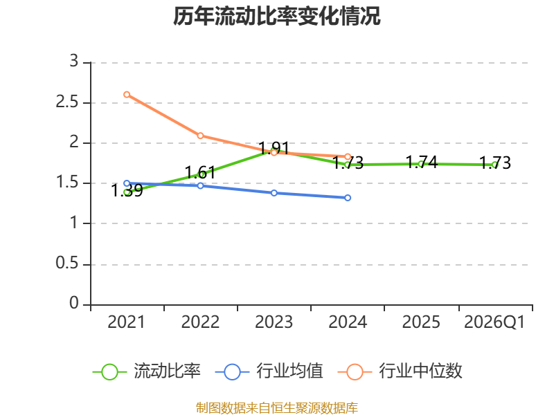 2026年第一季度,公司流动比率为1.73,速动比率为1.31。