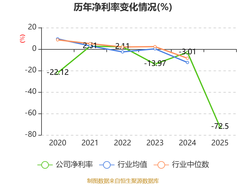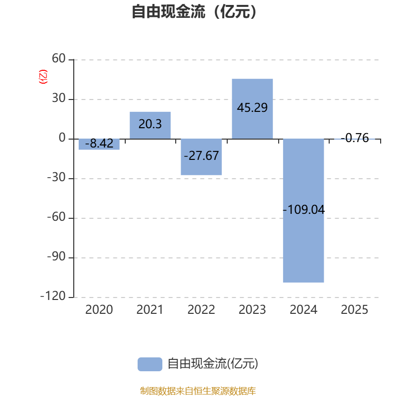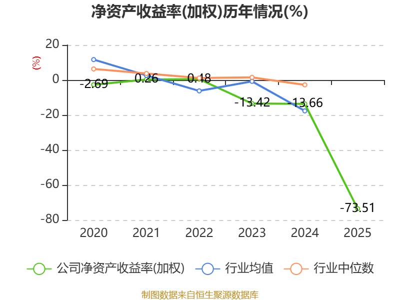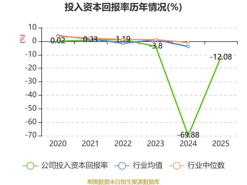 数据显示,2025年公司加权平均净资产收益率为-73.51%,较上年同期下降59.85个百分点。公司2025年投入资本回报率为-12.08%,较上年同期上升57.8个百分点。