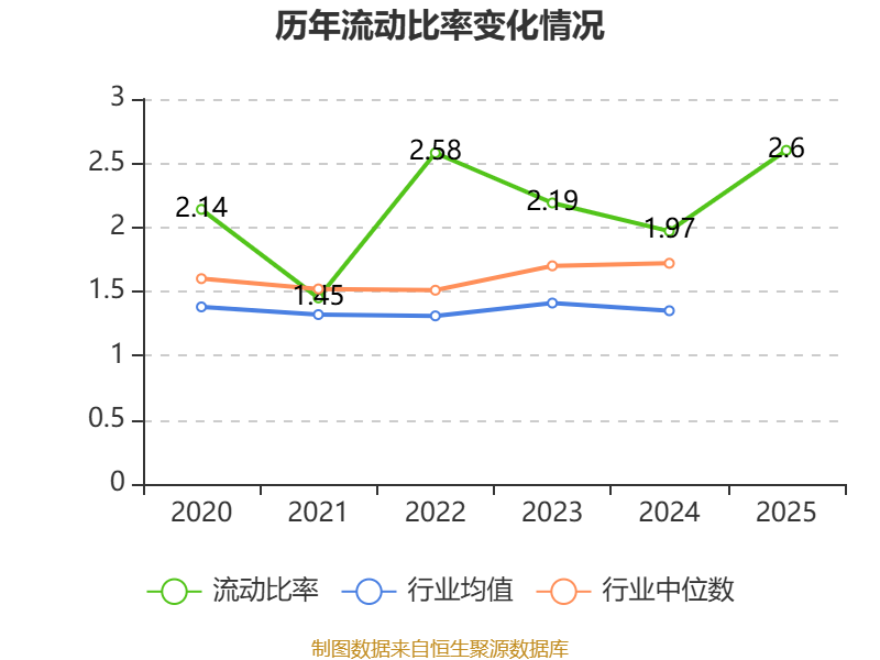 2025年,公司流动比率为2.6,速动比率为0.57。