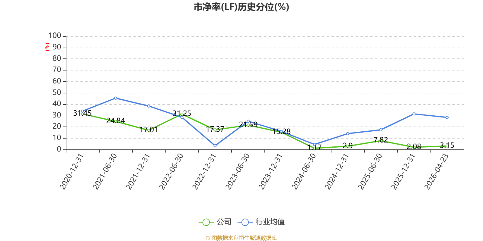 市盈率、市净率为负时,不显示当期分位数,会导致折线图中断。