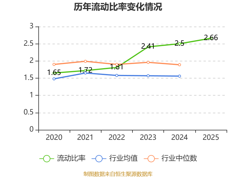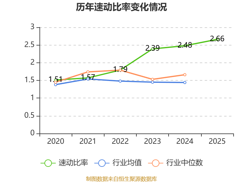 2025年,公司流动比率为2.66,速动比率为2.66。