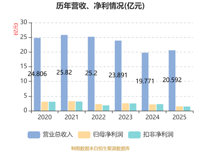 中证智能财讯甘咨询(000779)4月24日披露2025年年度报告。2025年,公司实现营业总收入20.59亿元,同比增长4.15%;归母净利润1.49亿元,同比下降31.32%;扣非净利润1.44亿元,同比下降36.40%;经营活动产生的现金流量净额为1.82亿元,同比增长30.77%;报告期内,甘咨询基本每股收益为0.3205元,加权平均净资产收益率为3.85%。公司2025年度分配预案为:拟向全体股东每10股派现0.4元(含税)。