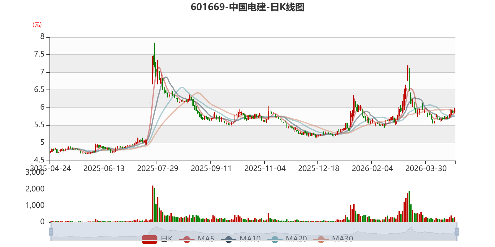 以4月23日收盘价计算,中国电建目前市盈率(TTM)约为10.23倍,市净率(LF)约0.61倍,市销率(TTM)约0.16倍。