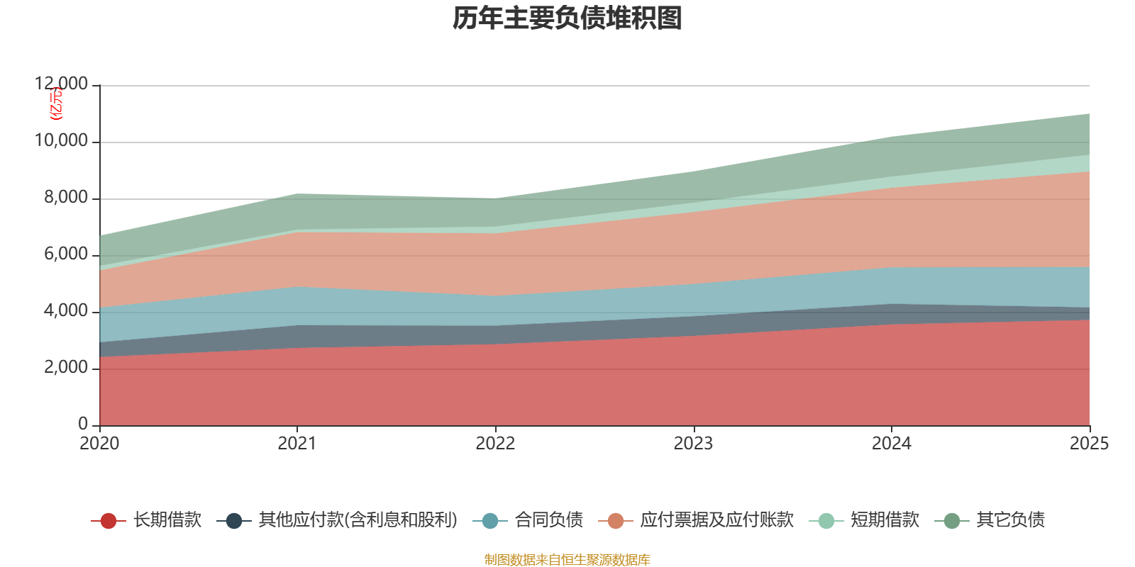 负债重大变化方面,截至2025年末,公司应付票据及应付账款较上年末增加20.25%,占公司总资产比重上升2.68个百分点;其他应付款(含利息和股利)较上年末减少38.86%,占公司总资产比重下降2.42个百分点;短期借款较上年末增加47.52%,占公司总资产比重上升1.16个百分点;长期借款较上年末增加4.34%,占公司总资产比重下降0.7个百分点。