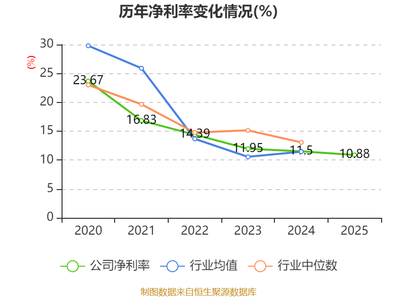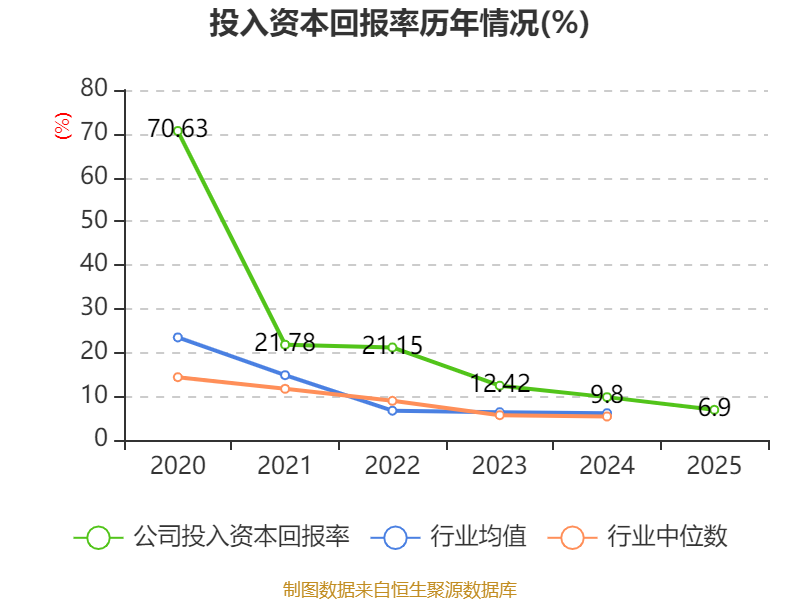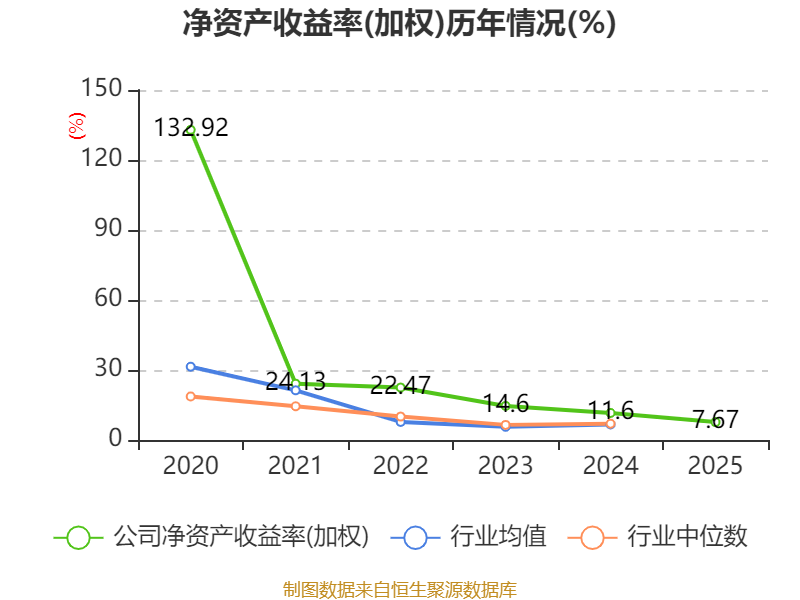 数据显示,2025年公司加权平均净资产收益率为7.67%,较上年同期下降3.93个百分点。公司2025年投入资本回报率为6.9%,较上年同期下降2.9个百分点。