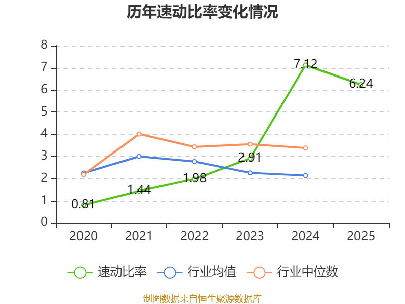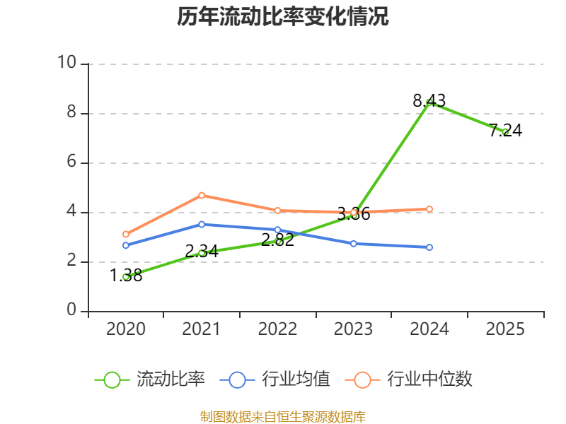 2025年,公司流动比率为7.24,速动比率为6.24。