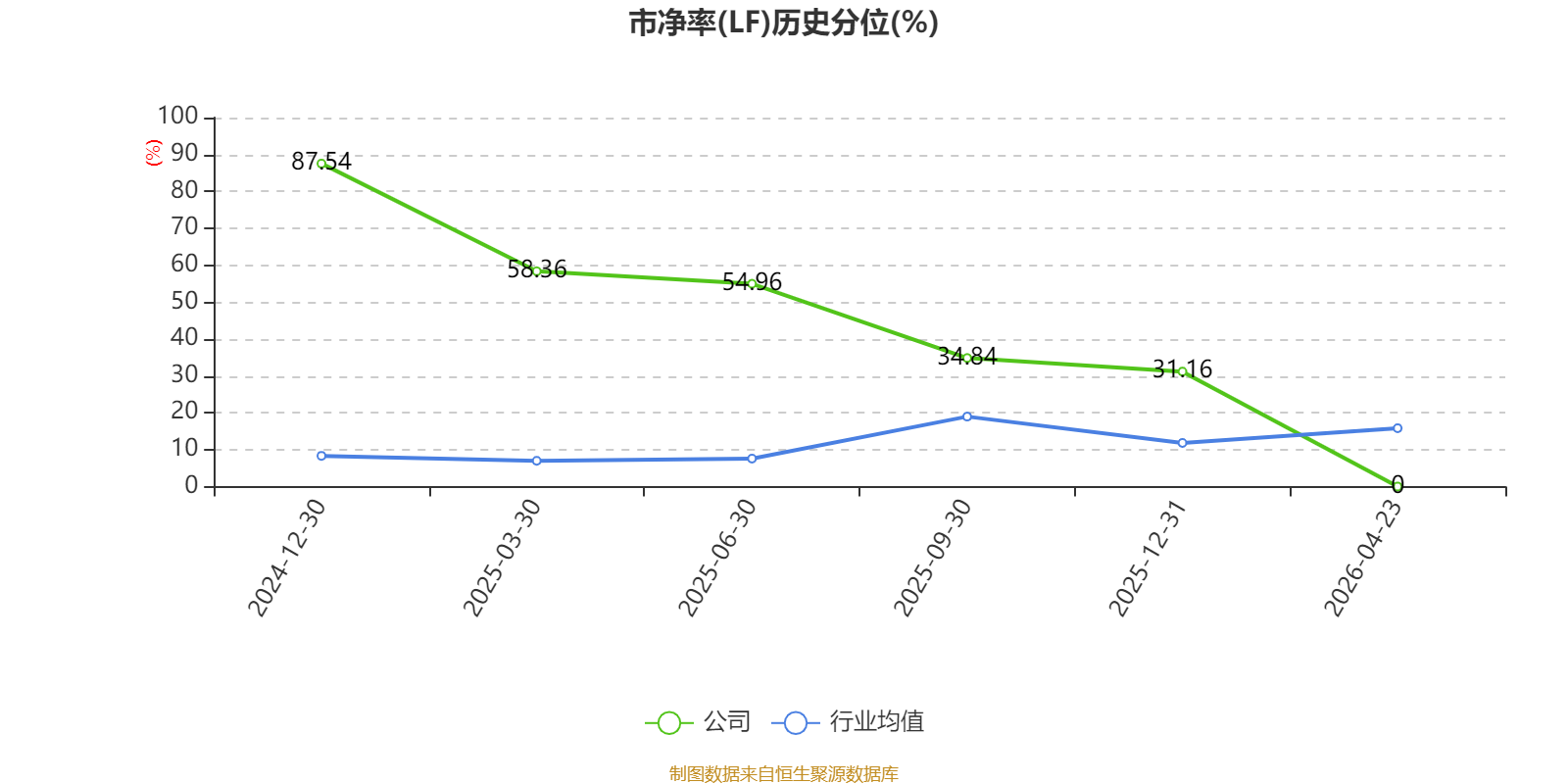 市盈率、市净率为负时,不显示当期分位数,会导致折线图中断。