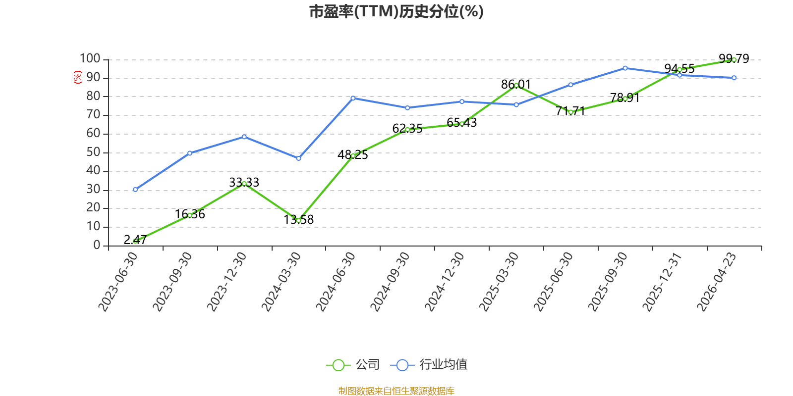 市盈率、市净率为负时,不显示当期分位数,会导致折线图中断。