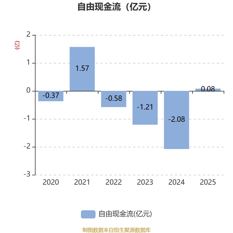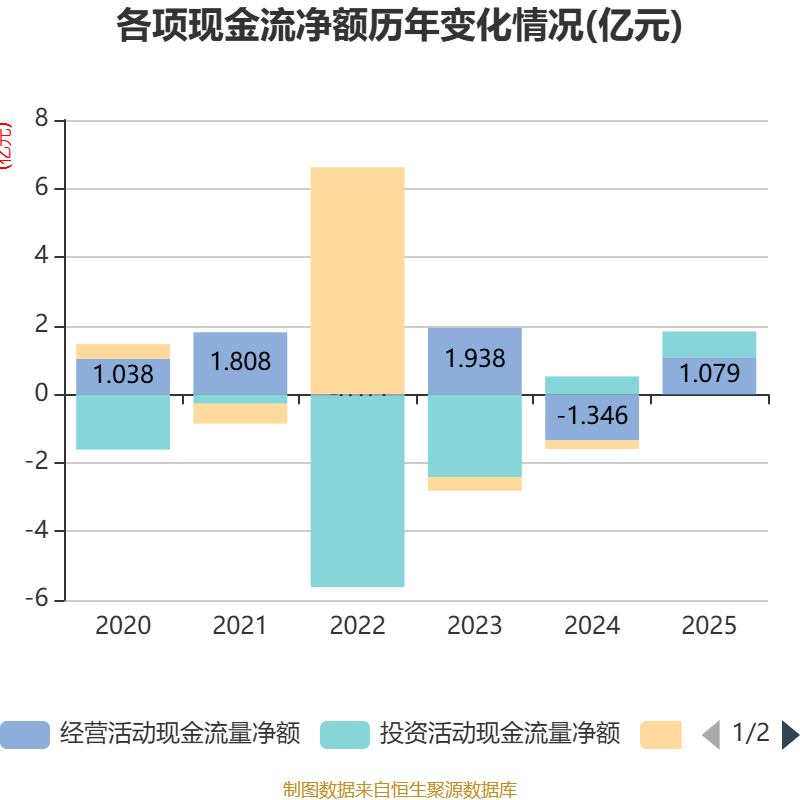 截至2025年,公司经营活动现金流净额为1.08亿元,同比增加2.42亿元;筹资活动现金流净额118.68万元,同比增加2643.66万元;投资活动现金流净额7528.78万元,上年同期为5220.82万元。