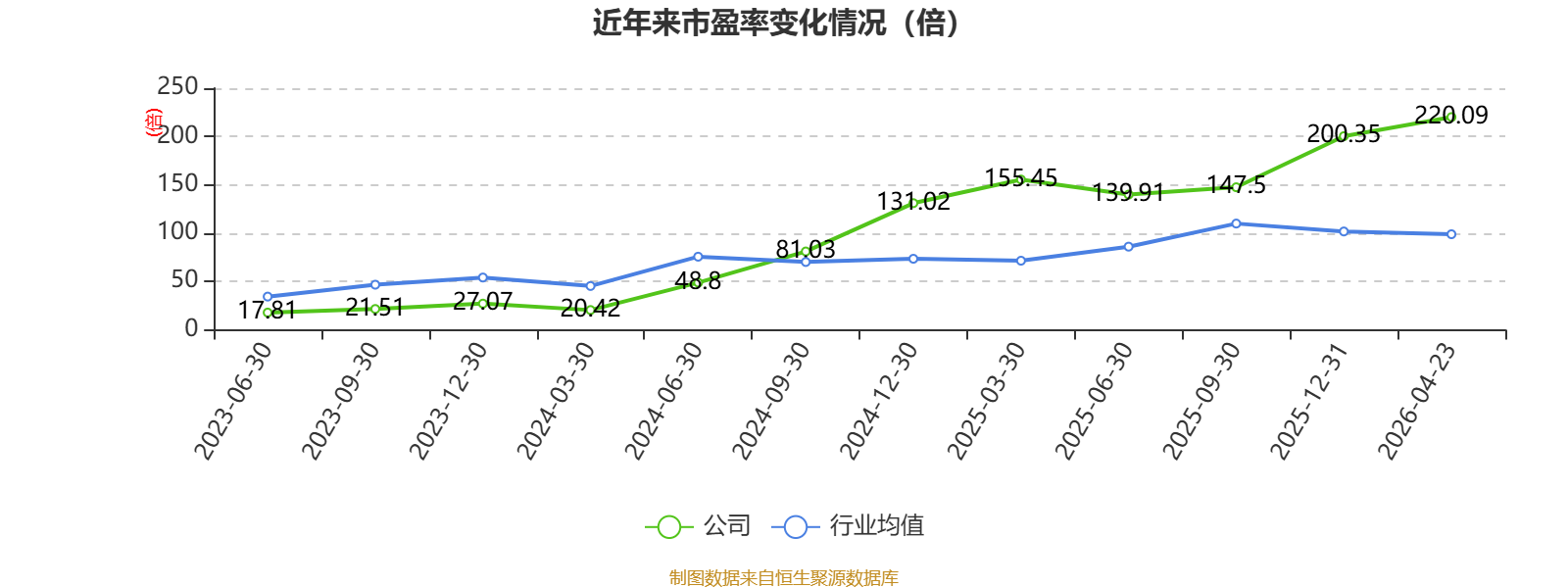 以4月23日收盘价计算,联盛化学目前市盈率(TTM)约为220.09倍,市净率(LF)约2.27倍,市销率(TTM)约4.4倍。