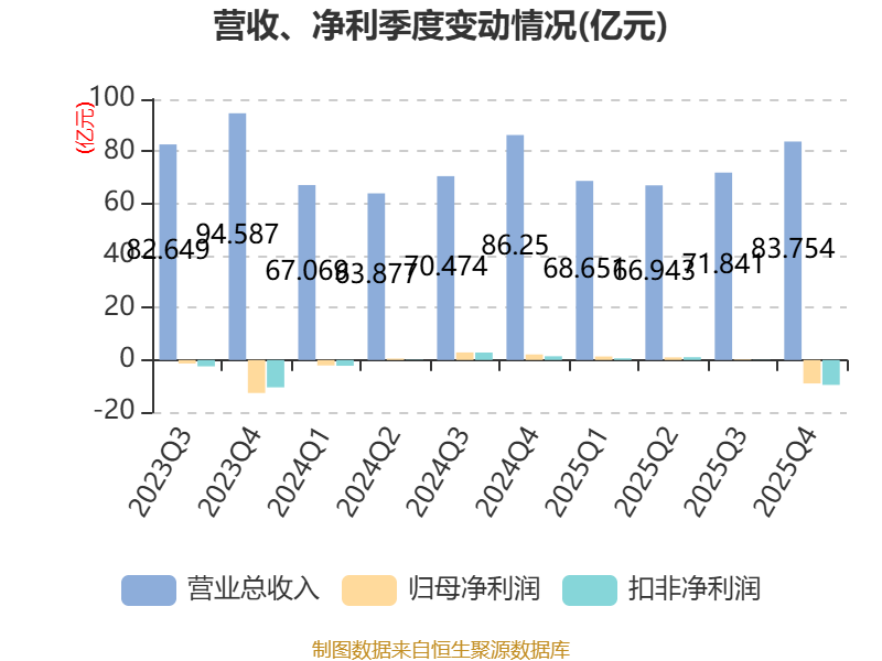 中证智能财讯大北农(002385)4月24日披露2025年年度报告。2025年,公司实现营业总收入291.19亿元,同比增长1.22%;归母净利润亏损6.42亿元,上年同期盈利3.46亿元;扣非净利润亏损7.76亿元,上年同期盈利2.21亿元;经营活动产生的现金流量净额为8.29亿元,同比下降66.62%;报告期内,大北农基本每股收益为-0.15元,加权平均净资产收益率为-7.85%。
