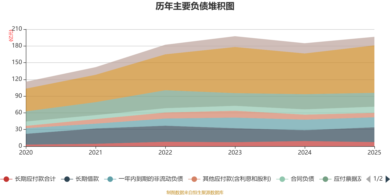 负债重大变化方面,截至2025年末,公司短期借款较上年末增加16.69%,占公司总资产比重上升4个百分点;长期借款较上年末增加36.46%,占公司总资产比重上升2.37个百分点;应付票据及应付账款较上年末减少8.89%,占公司总资产比重下降0.88个百分点;交易性金融负债合计较上年末减少89.8%,占公司总资产比重下降0.71个百分点。