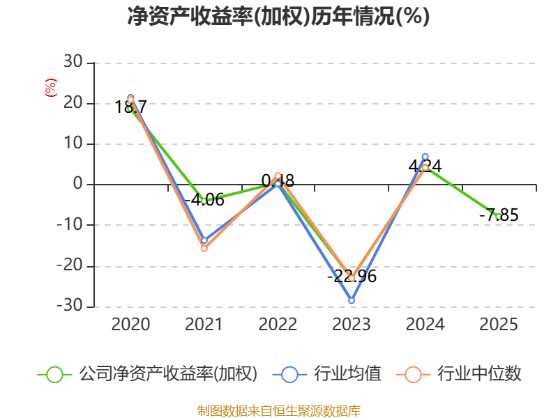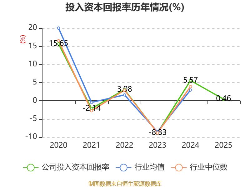 数据显示,2025年公司加权平均净资产收益率为-7.85%,较上年同期下降12.09个百分点。公司2025年投入资本回报率为0.46%,较上年同期下降5.11个百分点。