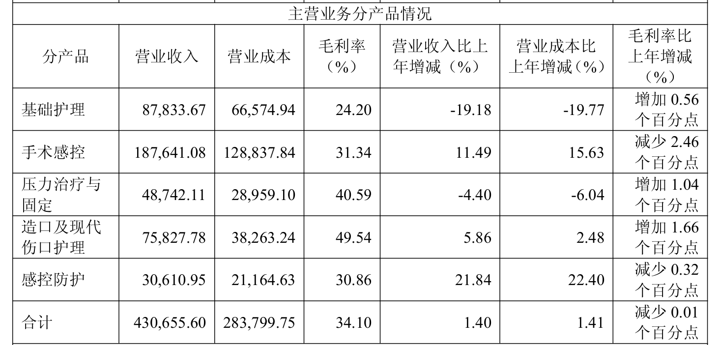 分产品来看,2025年,振德医疗基础护理、压力治疗与固定产品营收同比分别减少19.18%、4.40%,手术感控、造口及现代伤口护理、感染防护产品营收同比分别增长11.49%、5.86%、21.84%。