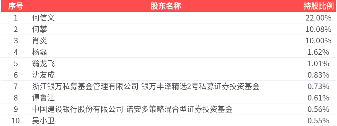 公司股东户数为9505户,前十大股东持股数量为3837.55万股,占总股本比例为47.97%,前十大股东持股情况如下: