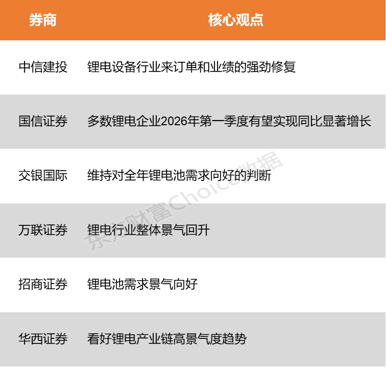 国信证券:多数锂电企业2026年第一季度有望实现同比显著增长