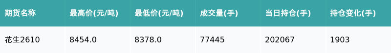 花生主力合约收跌0.26%