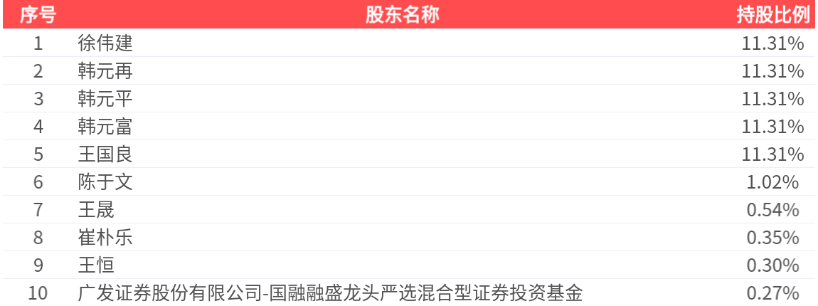 公司股东户数为5.03万户,前十大股东持股数量为1.10亿股,占总股本比例为59.00%,前十大股东持股情况如下: